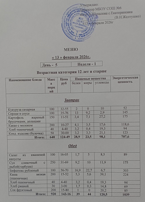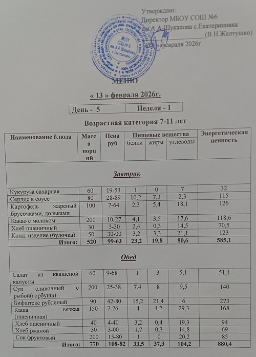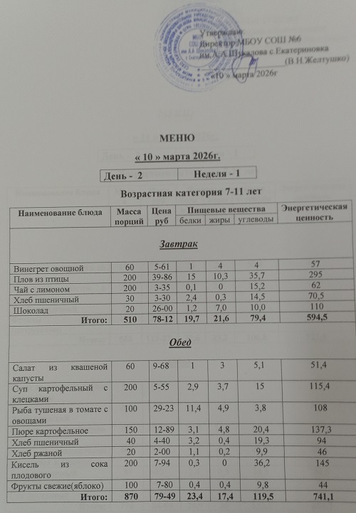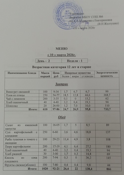 Ежедневное меню завтраков и обедовЕжедневное меню завтраков и обедов 2025-2026 учебный год